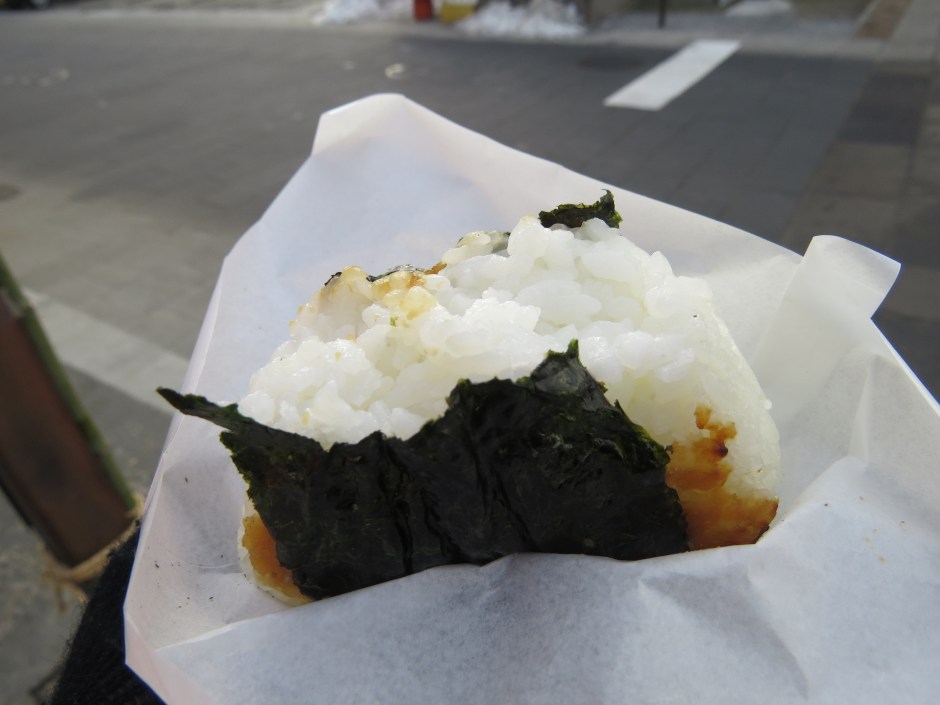 japanese street food rice ball ← Previous Next → Grilled rice ball with miso. Picked this goodness up from a street vendor in Nagano. Japanese rice ball. Grilled with miso.